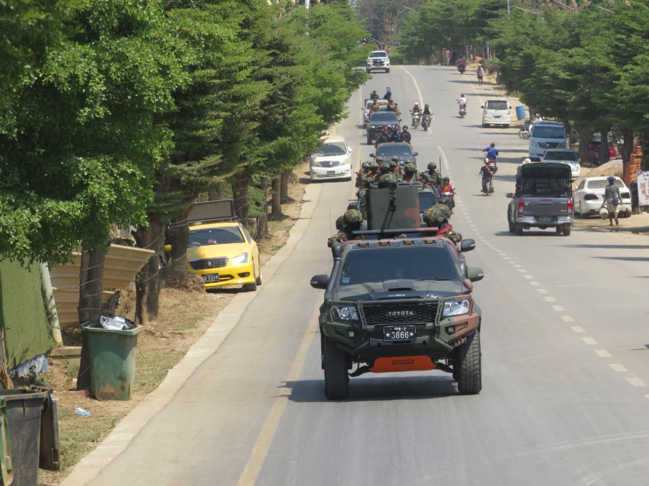 ကရင်ပြည်နယ်၊ မြဝတီမြို့အခြေစိုက် အာဏာသိမ်းစစ်ကော်မရှင်တပ် ယာဉ်တန်းသည် ယနေ့ (နိုဝင်ဘာ ၁၈ ရက်) နံနက်ပိုင်းက ကျားဖြန့်နှိမ်နင်းရေးအတွက်ဟုဆိုကာ ရွှေကုက္ကိုဘက် ထွက်သွားကြောင်း မြဝတီဒေသခံထံမှ သိရသည်။