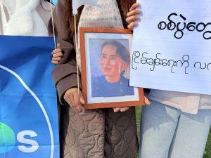 လေကြောင်းတိုက်ခိုက်မှုများရပ်တန့်ရန်နှင့် ဒေါ်အောင်ဆန်းစုကြည်လွှတ်ပေးရေး ငြိမ်းချမ်းရေးကမ်းလက်များအဖွဲ့ တောင်းဆို